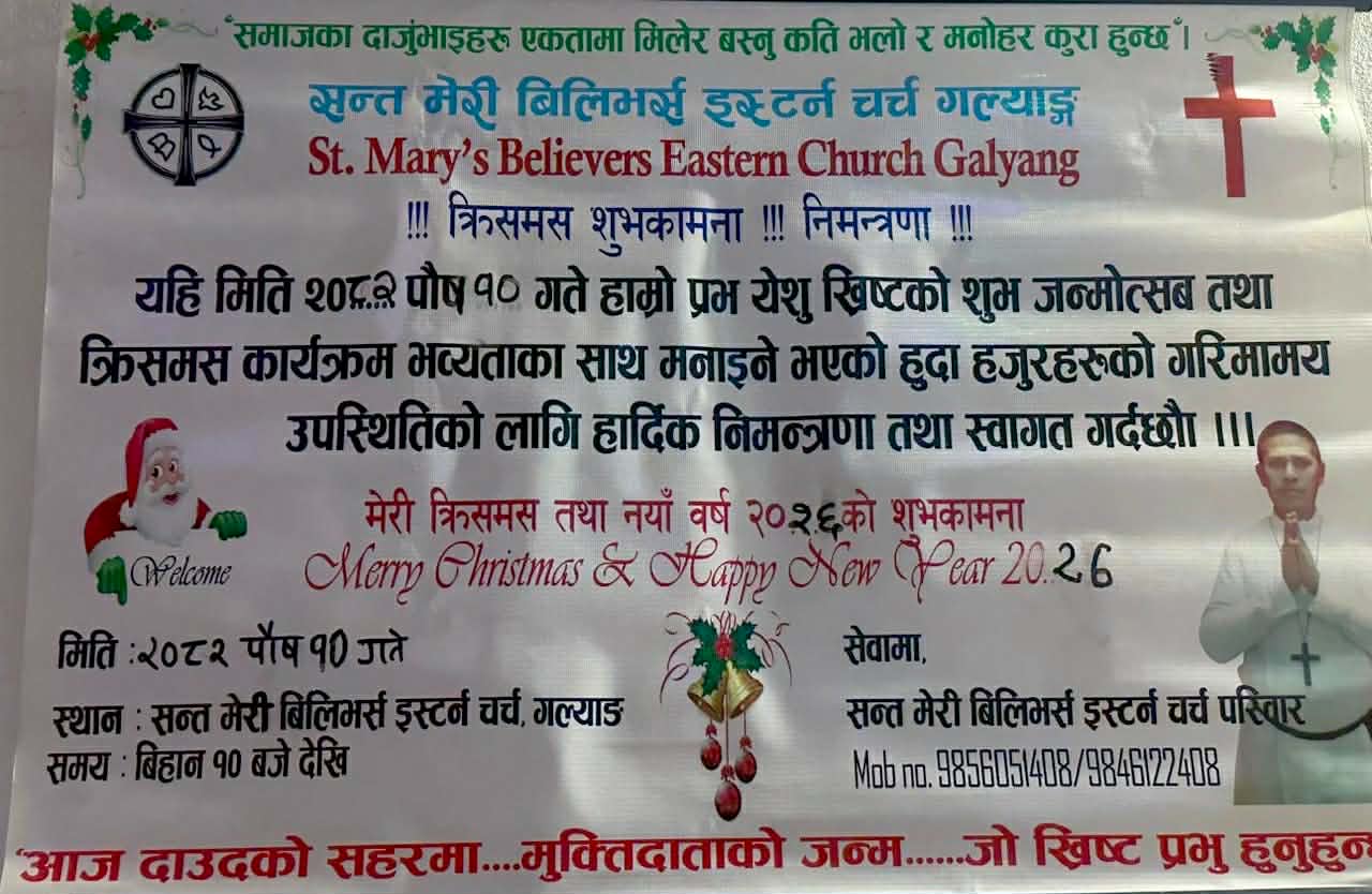 सयपत्री फुलको माला,नेपाली नौमती बाजा,नेपाल को झन्डा प्रयोग गरि क्रिसमस डे भव्य रूपमा सम्पन्न...