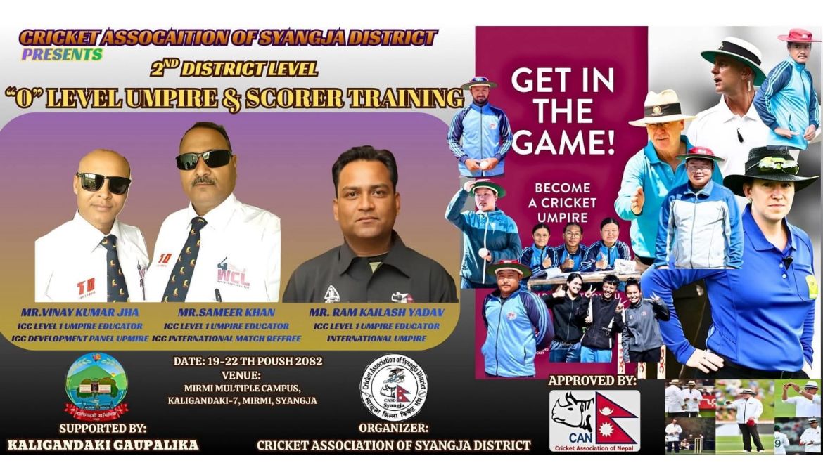 स्याङ्जाको कालीगण्डकी गाउँपालिकामा जिल्ला स्तरिय “0” लेभलको अम्पायर तथा स्कोरर तालिम सुरु