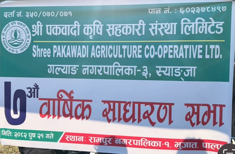 श्री पकुवादी कृषि सहकारी संस्था लि. गल्याङको ७औँ साधारण सभा सम्पन्न